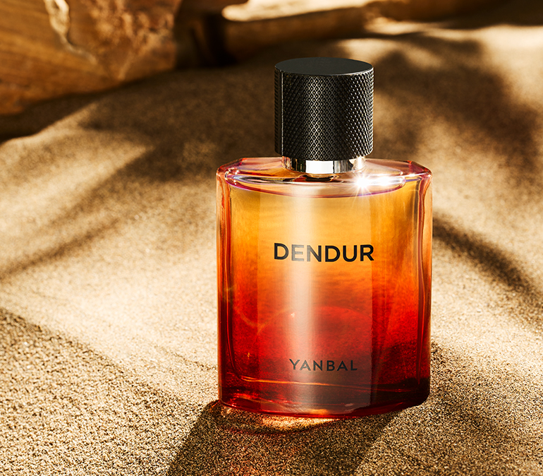 Inspirado en las puestas de sol que ve el hombre Dendur en sus trayectos. El frasco en degradé traslúcido, remarca la calidez y fuerza del perfume.